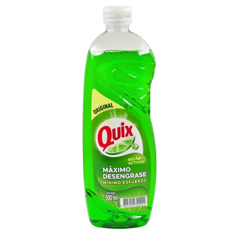 Asegure la máxima higiene en su cocina con el poder inigualable de Quix Original. Este detergente líquido lavalozas es el estándar de oro para eliminar la suciedad más difícil, permitiéndole mantener sus platos, vasos y ollas impecables con el mínimo esfuerzo. Su formato de 500 mL es perfecto para el uso diario, combinando un diseño práctico con una fórmula de alto desempeño.